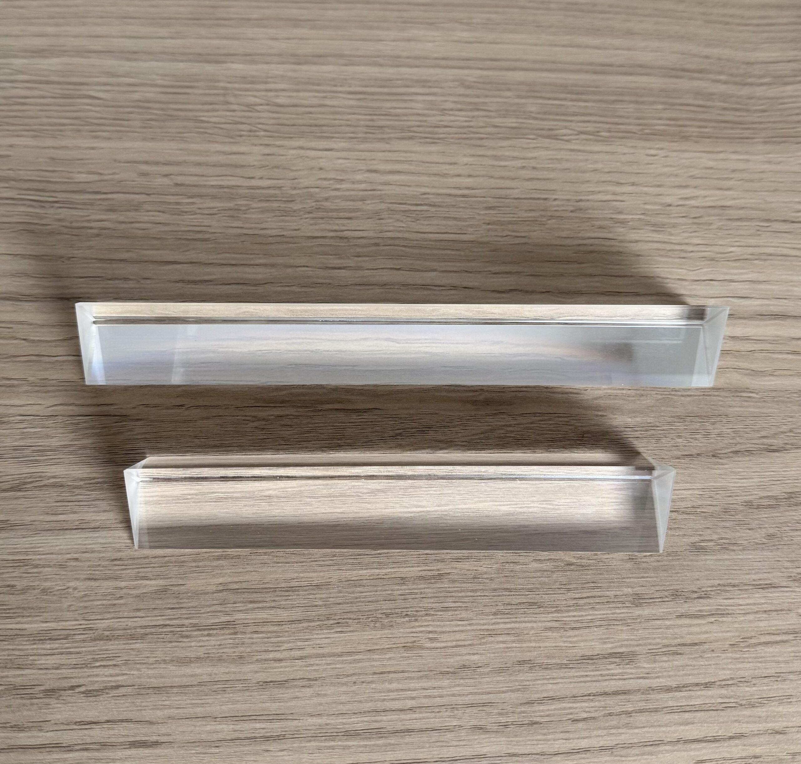 Prisme triangulaire en verre cristal K9 offrant une transparence exceptionnelle. Finition polie et durcie, surface lisse, résistante aux rayures et sans bulles, pour un rendu élégant et durable.
