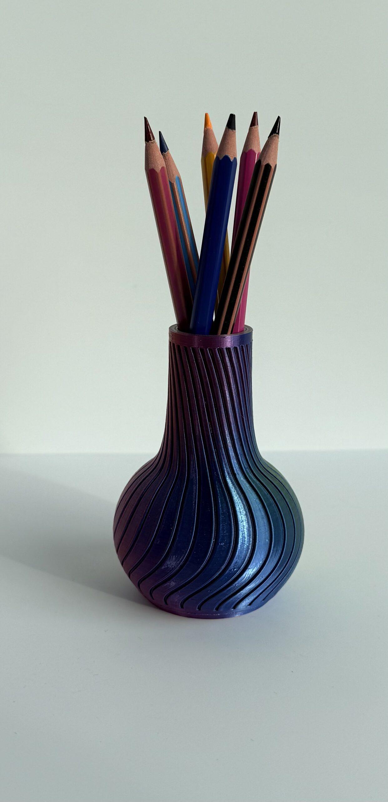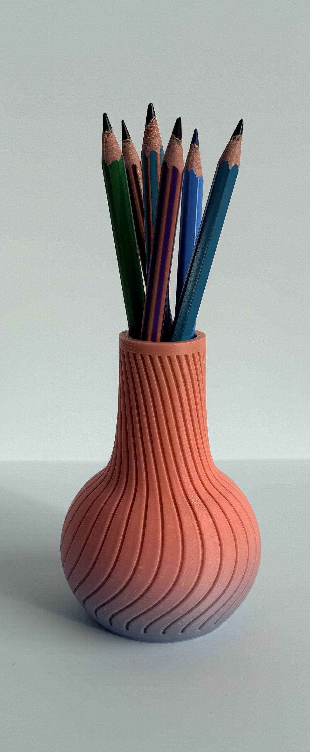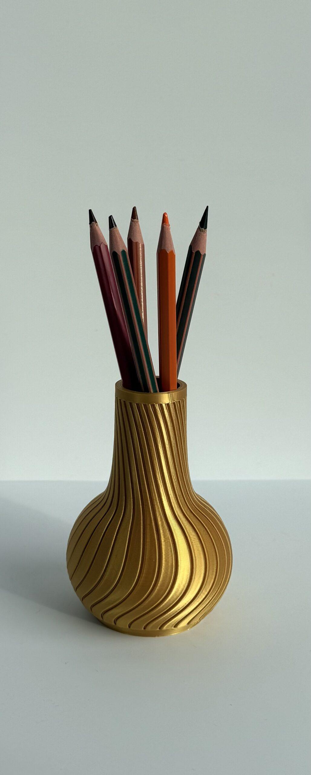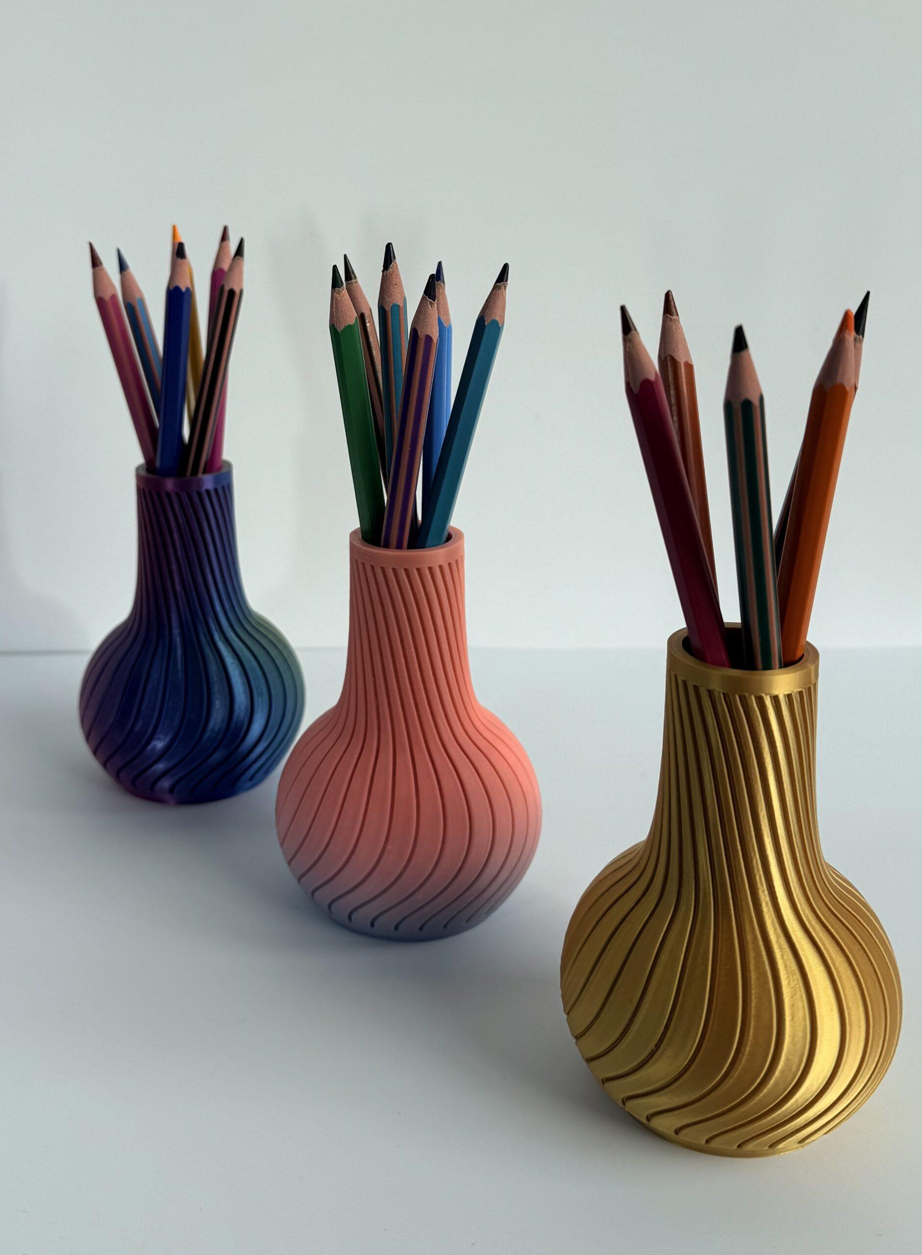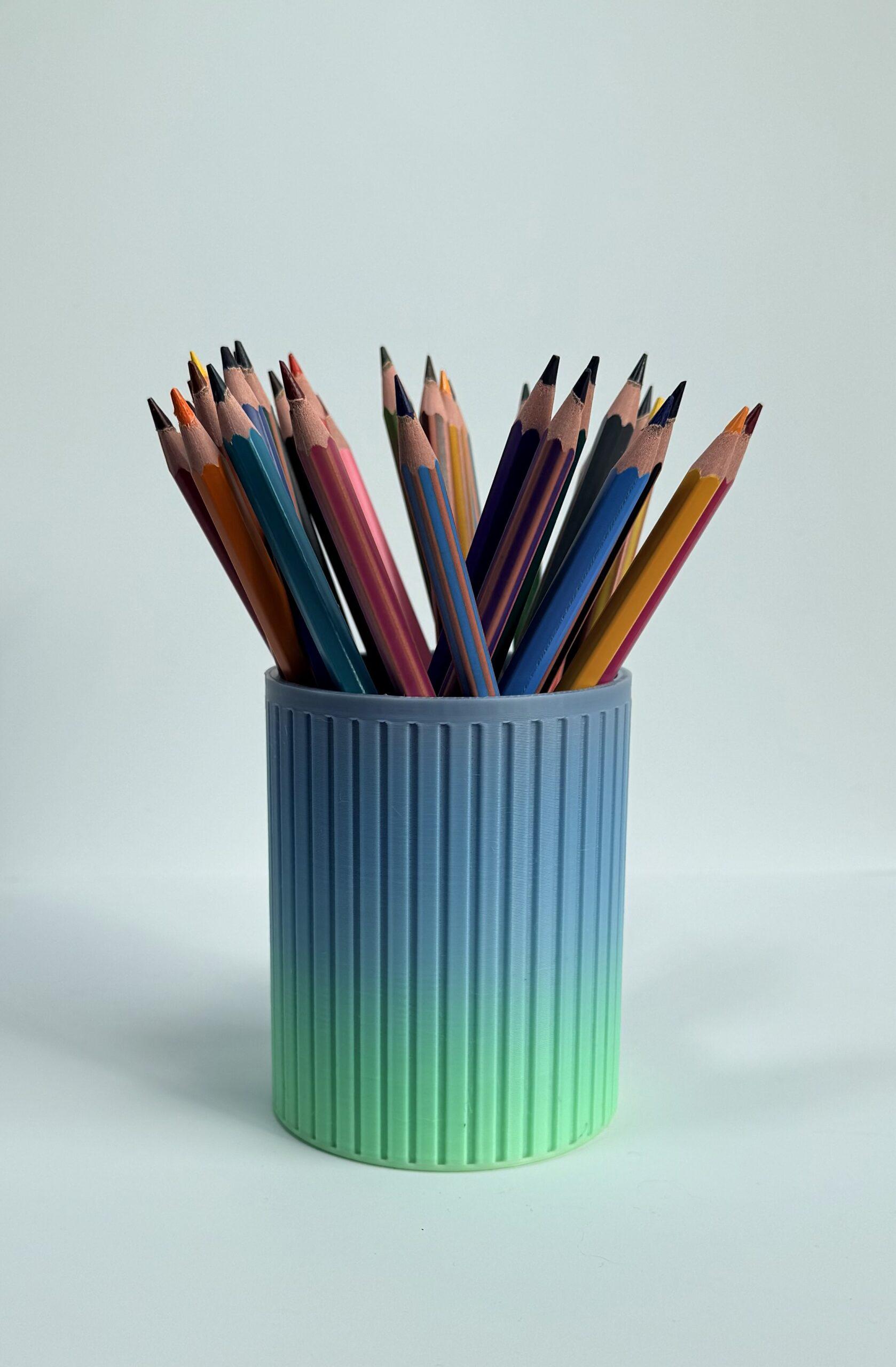 Pot à crayons imprimé en 3D au design moderne et épuré, disponible en deux formes :